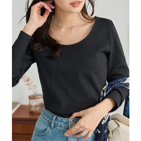 深めに開いたスクエアネック&Uネックが、すっきりとした抜け感を演出する長袖Tシャツ。
