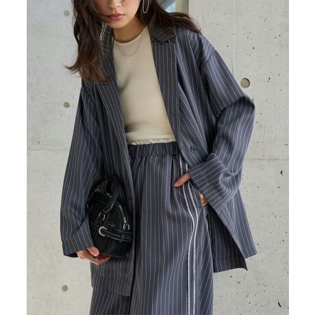 スーツ感覚で着れるストライプ柄がスタイリッシュな大人の印象に。