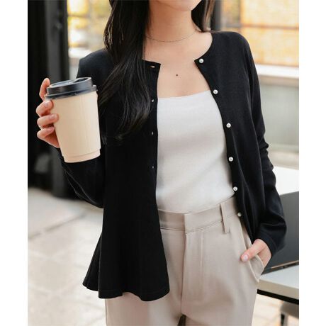 [Petitle/プチレ]パールボタンペプラムニットカーディガン[N1320]オフィスカジュアル