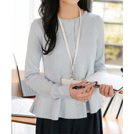 [Petitle/プチレ]パールボタンペプラムニットカーディガン[N1320]オフィスカジュアル