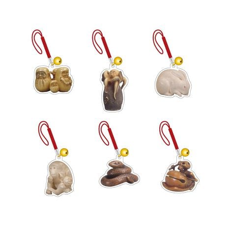 根付とは江戸時代に使われていた現代でいうストラップのような装身具です。小物入れの留め具に用いられ、様々なデザインが生まれました。ウサギからドクロまで6種のデザインを当時の楽しみ方を保ったままストラップとして現代に再現しました。(江戸時代 東京国立博物館所蔵)