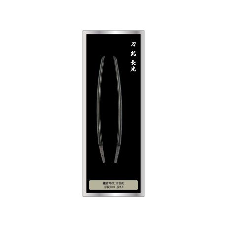 刀剣の輝きをイメージしたメタリックな質感のステッカーです。太刀(号 大般若長光) この太刀は長光の代表作のひとつで、室町時代にこの太刀が、貫(かん)という価値などをあらわす単位にして600貫と、全部で600巻の大般若経に結び付けて「大般若長光」と呼ばれました。(国宝 鎌倉時代13世紀 東京国立博物館所蔵)