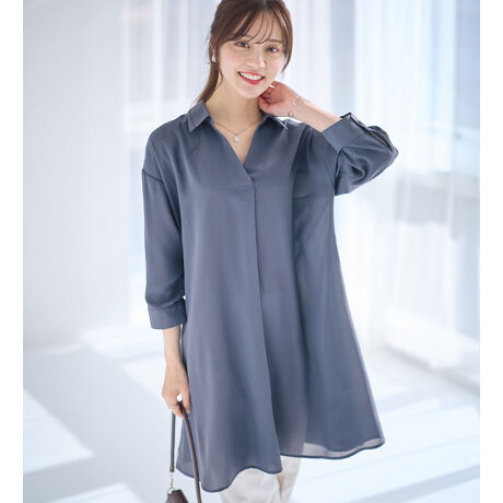 衿付きスキッパーとろみチュニックワンピース