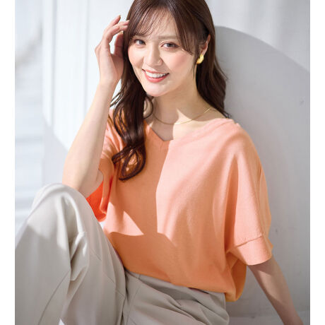 ゆるやかなVネックと落ち感のあるシルエットが、顔まわりをすっきり見せるプルオーバー。