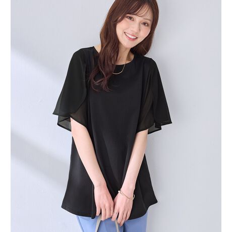 シフォン切替チューリップ袖チュニックTシャツ