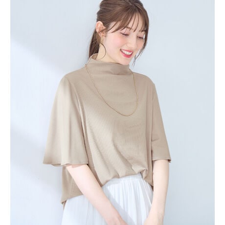 上品フレアー袖リブTシャツ