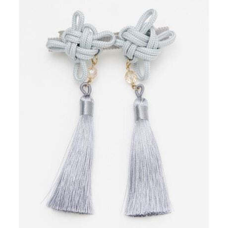 [型番:7PZZ6106-2026]華やかな組み紐をあしらった上品なバレッタ。立体的に結ばれた組み紐が存在感を放ち、揺れるタッセルが優美な動きを添えます。伝統的な結びの美しさとモダンな色合わせが調和したデザインです。