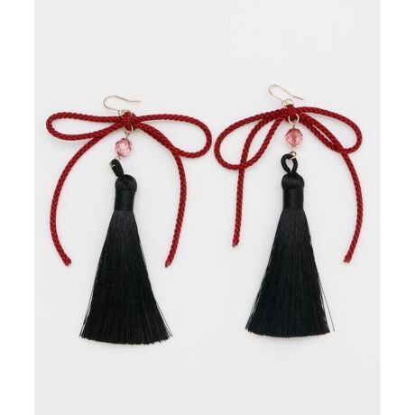 [型番:7PZZ6104-2026]縁を結ぶ象徴とされる「結び」をモチーフにしたピアス。華やかな組み紐の蝶結びと大ぶりのタッセルで顔回りが華やかな印象に。特別な日の装いにもおすすめのアクセサリーです。