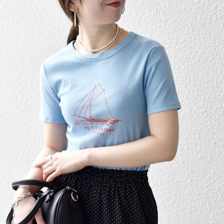 今季トレンドのマリン要素を取り入れた、ヨットプリントの別注デザイン。