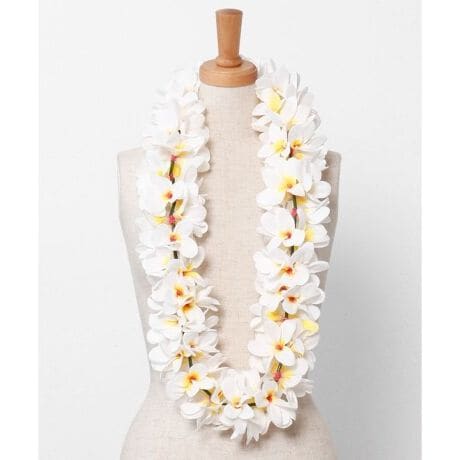 [型番:YCYZ6115-2026]立体感のあるプルメリアをふんだんにあしらったボリュームレイ。遠くからでも目を惹く華やかさで、ステージの表情を一層豊かに演出します。