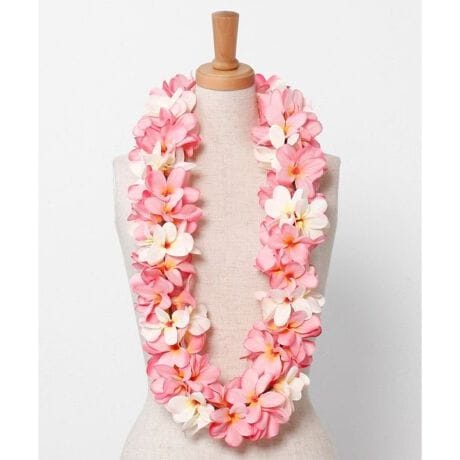 立体感のあるプルメリアをふんだんにあしらったボリュームレイ。遠くからでも目を惹く華やかさで、ステージの表情を一層豊かに演出します。