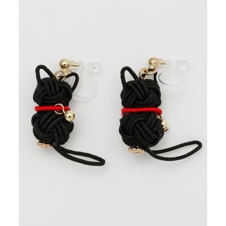 [型番:7PZZ6102-2026]日本の猫をモチーフにした、水引細工のイヤリング。白猫や黒猫、ブチネコなど愛らしい姿を繊細な結びで表現しました。金色の鈴がちょこんと揺れ、動くたびに優しい音色が響きます。