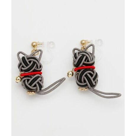 [型番:7PZZ6102-2026]日本の猫をモチーフにした、水引細工のイヤリング。白猫や黒猫、ブチネコなど愛らしい姿を繊細な結びで表現しました。金色の鈴がちょこんと揺れ、動くたびに優しい音色が響きます。