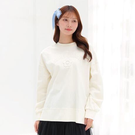 裾のスリットが抜け感を演出するプルオーバー。◆ポイント・立体的なロゴ刺繍・しっかりした素材のロングTシャツ・オーバーサイズ・BACKの丈が長めでお尻までカバー・両脇スリット入り・長袖◆コーディネートブラウスをインしてレイヤードするコーデもおすすめです。[型番:226-601900]