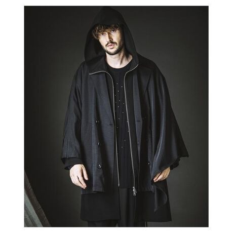 ロングシルエットならではの迫力と存在感を際立たせたフーデッドコート。