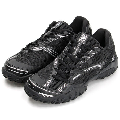 さまざまなパターンやテクスチャメッシュ素材を大胆にミックスし、粗めのメッシュと細やかな素材感のコントラストがデザインポイント。 光沢のあるシルバーのパーツがアクセントとなり、近未来的なテック感と、どこか懐かしいレトロな雰囲気が絶妙なバランスで融合。 デザインアッパーを走るスピード感溢れる斜めのデザインが、静止していても動き出しそうなスポーティーでユニークな雰囲気を作り出す。 この流れるようなラインは、足元をシャープに見せるだけでなく、アクティブな都市生活者のライフスタイルにマッチする躍動感を表現。