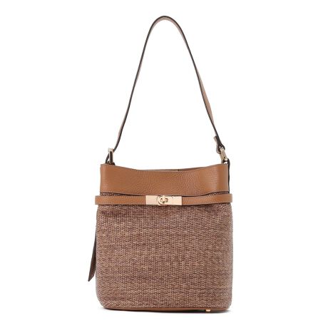 普段使いににぴったりな異素材MIX仕立てのバッグです。マチをたっぷりとったスクエア型のシルエットで見た目以上に収納力は抜群、お出掛けに必要なアイテムがまるごと収まります。肩掛けもできる長めのストラップで通勤などの移動の際も楽ちん、底鋲付きで床置きができるのもうれしいポイントです。