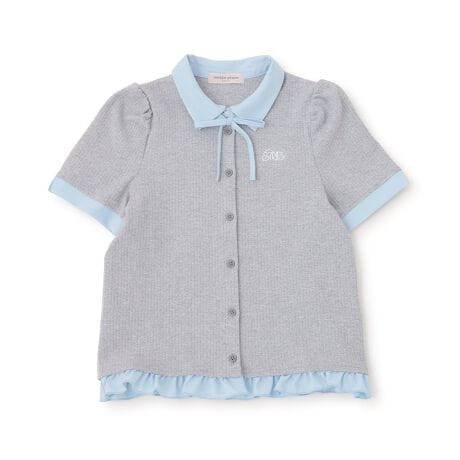 別布のドッキングでレイヤード風にデザインしたTシャツです。色合いと風合い、柄の組み合わせにこだわった2色展開。首元のリボンはお好みでつけ外せるため、その日の気分や羽織りものに合わせてアレンジするのがおすすめです。裾フリルのさりげないかわいい演出も見逃せません。