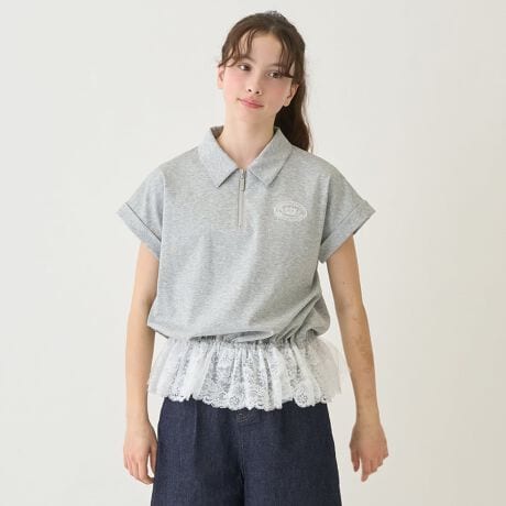 スポーティなハーフジップと衿使いがかわいいトップスです。