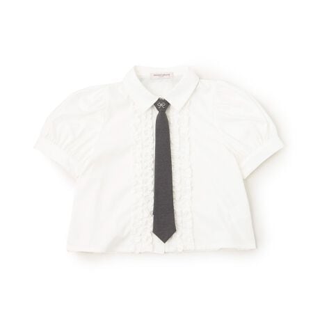 プレッピースタイルにぴったりなネクタイつきのブラウスです。腰まわりをすっきりさせてスタイルを良く見せてくれるクロップド丈や、華やかな前立てフリルがポイント。スカートとのとびっきり甘いスタイリングがおすすめです。ネクタイは外せるため、単品でもご使用いただけます。