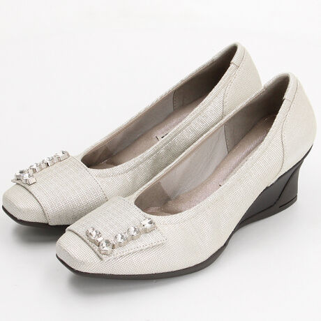 [型番:723126]ビジューモチーフコンフォートウェッジパンプス