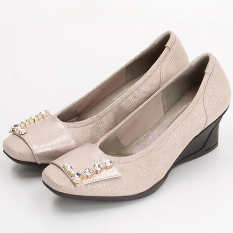 [型番:723126]ビジューモチーフコンフォートウェッジパンプス