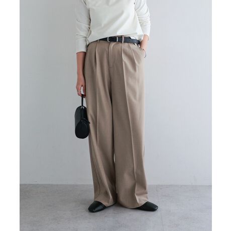 フロントの2本のタックで腰まわりにゆとりを持たせながら、