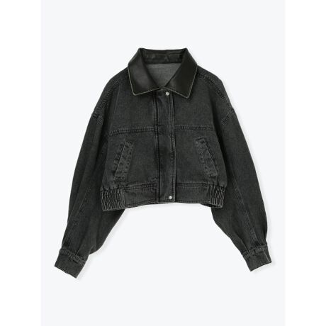 [型番:26560784703]合皮素材の衿を組み合わせた、コントラストが目を引くデニムジャケット。コンパクトな丈感と程よく丸みのあるシルエットで、バランスが取りやすく軽やかな着用感。パンツでハンサムに、スカートやワンピースに合わせて甘さを抑えたスタイリングも楽しめます。