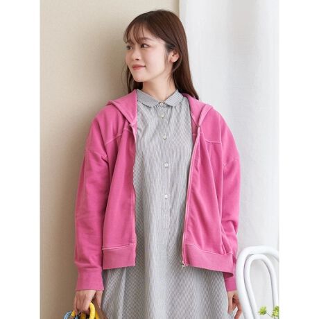 [型番:26410704470]ピグメント加工ならではの、程よく色落ちした風合いが特徴のジップパーカー。シンプルなデザインながら、ヴィンテージライクな表情がスタイリングにこなれ感をプラスします。デニムやカーゴパンツと合わせてラフに着こなすのはもちろん、スカートやワンピースの上から羽織って甘さを抑えたスタイリングもおすすめ。Hare no hi/ハレノヒ
