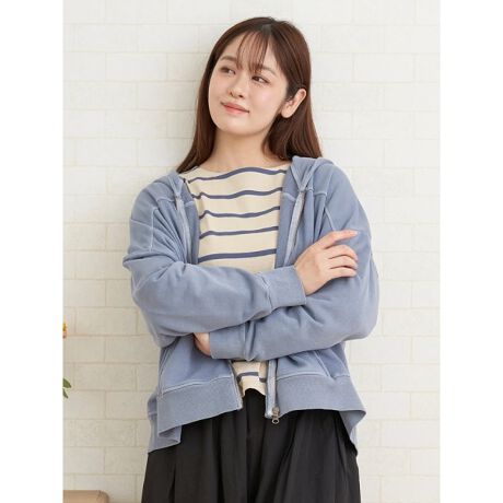 [型番:26410704470]ピグメント加工ならではの、程よく色落ちした風合いが特徴のジップパーカー。シンプルなデザインながら、ヴィンテージライクな表情がスタイリングにこなれ感をプラスします。デニムやカーゴパンツと合わせてラフに着こなすのはもちろん、スカートやワンピースの上から羽織って甘さを抑えたスタイリングもおすすめ。Hare no hi/ハレノヒ