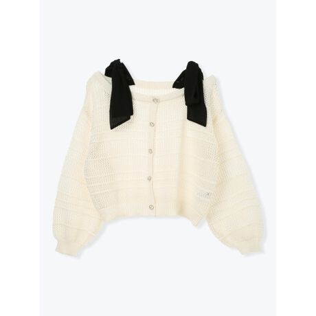 ラメショルダーリボンニット