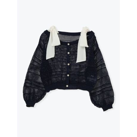 ラメショルダーリボンニット