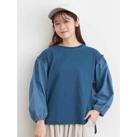 インディゴ異素材プルオーバー