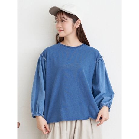 インディゴ異素材プルオーバー
