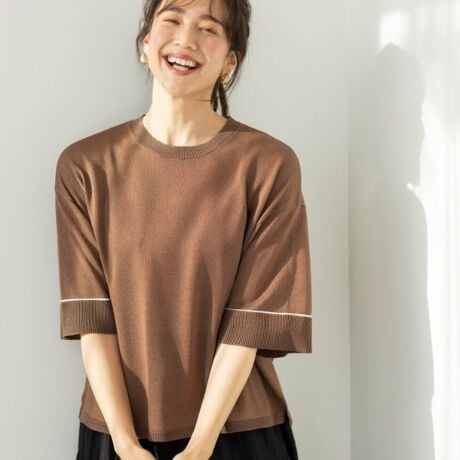 袖とボタンの配色がポイント!Tシャツ感覚のニットトップス