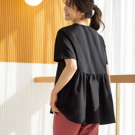 バックペプラム部分にはやや張り感のある布帛素材を使用しております。