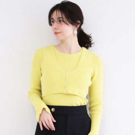 ・ベーシックなリブニットと、ビスチェ風ベストがセットになったレイヤードを楽しめるデザインニット。