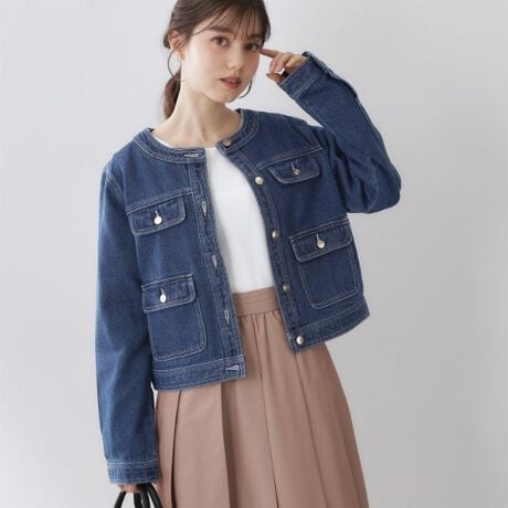 セルロース混デニムの柔らかさが嬉しいミニマルノーカラージャケット