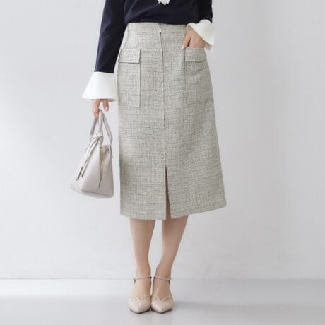 ツイード調のニュアンスが光る、大人の上品さをまとうタイトスカート