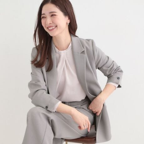 マニッシュになりすぎない1段釦のWブレストデザインです。