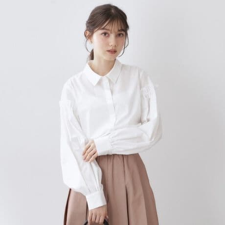 トレンド感と抜け感が魅力の、衿付きボリュームスリーブブラウス