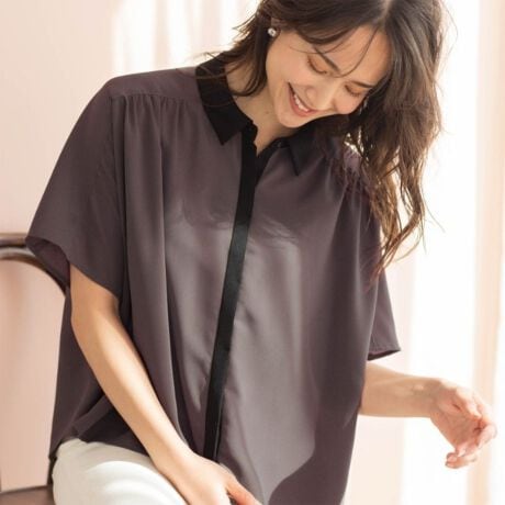 衿と前立ての配色がポイントのブラウス。