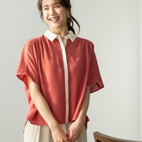 衿と前立ての配色がポイントのブラウス。