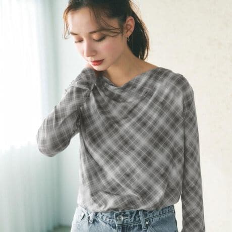 ・軽やかなシアーチェック素材が、柔らかく、女性らしさを引き立てるデザイン。