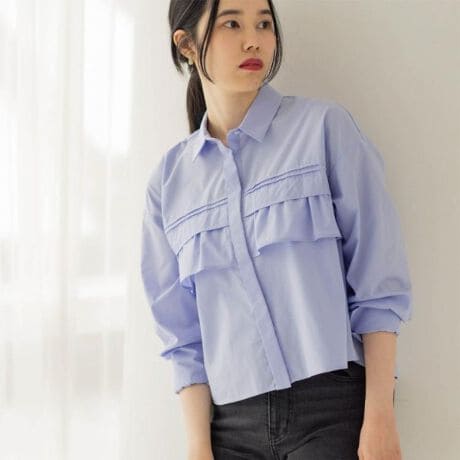 ・フロントに細かいタックとフリルをあしらい、華やかに仕上げたデザインシャツ