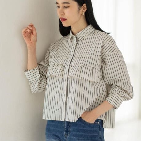 フロントのタックとさりげないフリルで品良く華やぐ、