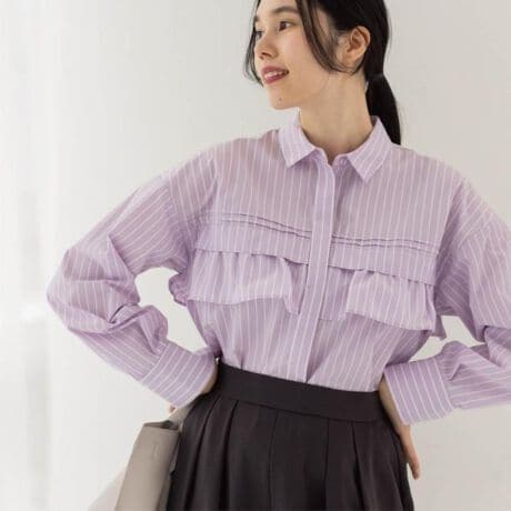 ・フロントに細かいタックとフリルをあしらい、華やかに仕上げたデザインシャツ