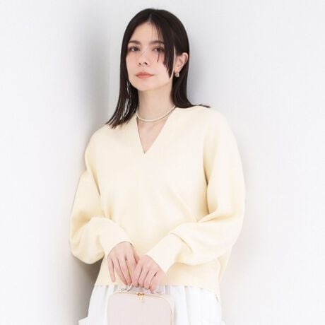 ・きれいめに着られるベーシックなニットながら、キーネックデザインで抜け感をプラスできるニットトップス。