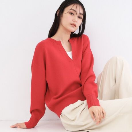 抜け感のあるキーネックデザインがポイントのプルオーバーニット