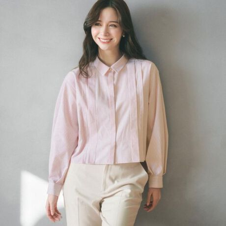 環境に配慮したエシカルブロードの短丈タックシャツ